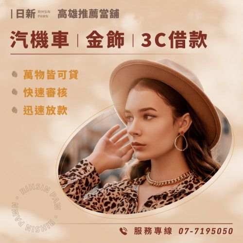 高雄日新當舖汽車借錢機車借款高雄市鳳山區鳳松路176-13號(和樂宴會館旁)在高雄、鳳山區、三民區、仁武區、鳥松區、大寮區、五甲區、苓雅區等地區經營政府立案之合法當舖,誠信經營、服務親切。在您急須週轉的關鍵時刻,可以給你很快速的紓困管道,幫您解決借錢錢關。高雄日新當舖汽車借錢機車借款專營高雄鳳山區汽車借款、大寮區機車借錢、三民區萬物珠寶黃金質借、仁武區公司行號及鳥松區中小企業融資、苓雅區金融與諮詢服務、五甲區個人小額借錢借貸、公司、工廠、機器大額融資、借貸、借款、借錢、典當等,生意人需要的臨時週轉金,為您規畫適合的借貸方案,利息低、借款保密、專業估價、真誠協助您應付資金借款等問題您信任的好朋友。